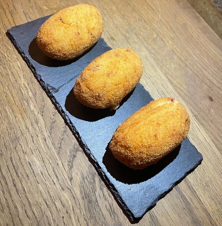 Rebozado crujiente por fuera, interior cremoso con jamón ibérico de verdad. Una tapa que nunca falla.
